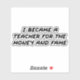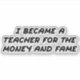Sticker Je suis devenu enseignant pour l'argent et la célé