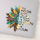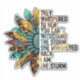 Autocollant turquoise et or tournesol inspirationnel ordinateur portable. Le texte dit : "Ils lui ont murmuré que vous ne pouvez pas résister à la tempête. Elle murmura : "Je suis la tempête."