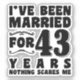 Après une décennie de mariage, il n'y a pas de défi trop intimidant. Célébrez votre amour durable et votre engagement indéfectible avec notre design "Je suis marié depuis 43 ans Rien ne me fait peur". C'est une déclaration audacieuse d'amour durable et la force d'un partenariat qui peut conquérir n'importe quoi. Prenez-le fièrement et montrez au monde qu'avec une décennie de mariage sous votre ceinture, vous êtes intrépide et prêt à prendre toute vie qui vous mène.