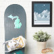 State of Michigan Silhouette remplie d'aquarelle bleu vert et les mots "I'm A Michigander". Offre un excellent cadeau à n'importe quel fan du Michigan sur votre liste ou le décor parfait de l'art d'accent pour la cabine du nord, le chalet, la maison de lac ou la location de vacances. Design du Michigander.