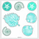 Été jeu d'autocollants 7 dollars de sable, corail et coquillages en bleu océan et aqua