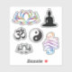 Ensemble de six autocollants avec symboles de la pleine conscience, méditation, symboles bouddhistes y compris les fleurs de lotus, symbole om, symbole yin yang, boddhisatva.