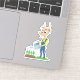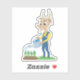 Autocollant vinyle personnalisé avec une illustration d'un petit bouc jardinier mignon, qui arrose ses légumes avec un arrosoir, motifs de dessins animés sur le thème du jardinage pour enfants