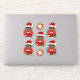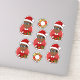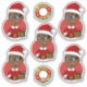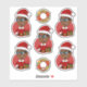 Ensemble de sept autocollants en vinyle coupé avec l'illustration d'un joli petit garçon afro-américain souriant et souriant avec des lunettes, qui est habillé en vêtements de Noël et porte un casquette du Père Noël rouge, sur un arrière - plan rouge ; cinq autocollants du garçon et deux autocollants avec une couronne de Noël