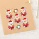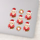 Ensemble de sept autocollants en vinyle coupé avec l'illustration d'un joli petit garçon souriant et joyeux, aux cheveux courts de gingembre, qui est habillé en vêtements de Noël et porte un casquette du Père Noël rouge, sur un arrière - plan rouge; cinq autocollants du garçon et deux autocollants avec une couronne de Noël