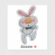 Cet autocollant en vinyle est un mignon lapin blanc avec un nez orange, joues roses portant une cravate arc noir donnant un signe pouce vers le haut.