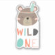 Un joli autocollant de premier anniversaire avec un texte qui dit "Un sauvage", avec un joli et adorable ours brun. Parfait pour les anniversaires à thème Boodland ou Tribal Boho.