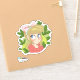 Petit autocollant mignon d'une illustration de fille de dessin animé avec un ruban rose et entouré de feuilles vertes. Idéal pour le scrapbooking, la planification et pour ceux qui aiment les autocollants mignons.