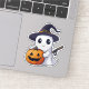 Sticker Jolie sorcière fantôme avec Jack-o-Lantern