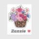 Un joli autocollant de fleurs dans un panier en osier, style peinture à l'huile. Conception créée par l'artiste numérique Cherie
