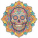 Image vibrante et complexe, avec un crâne à sucre mexicain traditionnel, orné de fleurs colorées et de motifs complexes. Parfait pour les fêtes de Dia de los Muertos ou pour ajouter une touche de culture mexicaine à votre espace.