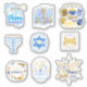 Planche d'autocollants de Hanukkah. Ces autocollants sont parfaits pour vos besoins de création de cartes avec des enfants ou à envoyer à la famille. Ils deviennent essentiels lorsque vous créez des cartes de vacances pour des dons aux personnes âgées et aux hôpitaux. Ils sont beaux avec des images qui célèbrent le grand miracle qui s'est produit. Ils sont colorés et vous pouvez même choisir la taille qui vous convient. C'est idéal pour les donner à vos petits-enfants ou pour les mettre sur vos cahiers et orner vos bouteilles d'eau. Il n'est pas toujours facile de trouver des autocollants de Hanukkah, c'est pourquoi j'ai mis cette planche avec 6 beaux autocollants. Ils expriment "Joyeux Hanukkah, Paix, Lumière, Joie" et des citations amusantes comme "Allumons et Je t'aime, Latkes". Les