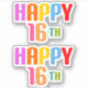 Deux autocollants disant : "Joyeux 16ème"