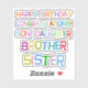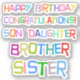 texte coloré : "Joyeux anniversaire" "Félicitations !" "Fils" "Fille" "Frère" "Soeur"