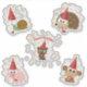 Joli jeu d'autocollants d'anniversaire confetti animaux de fête. Afficher ensemble ou séparément. Les animaux de fête comprennent un hérisson, un escargot, un singe, un castor et un cochon.