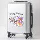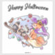 Happy Halloween Kittens Riding a Broom Sticker Stickers sont coupés à la forme exacte de votre image et fabriqués à l'aide d'un processus de coupe personnalisée (baiser-cut) sur des feuilles de vinyle