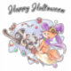 Sticker Joyeux chatons d'Halloween à cheval dans une chamb