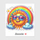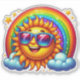 Un soleil joyeux et des lunettes de soleil élégantes descendent du ciel, entourés de nuages moelleux et d'étoiles vibrantes. L'arc-en-ciel lumineux voûte gracieusement dans l'arrière - plan, évoquant des sentiments de bonheur et de motivation tandis que les ondes estivales remplissent l'air.
