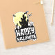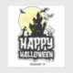 Happy Halloween dessin de texte avec maison hantée, de cimetière et de chauve-souris décoration à pleine lune sur arrière - plan blanc