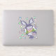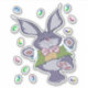 Une photo adorable d'un lapin dansant avec des oeufs colorés autour de lui, est présentée sur ces autocollants taillés sur mesure. Idéal pour la décoration, Pâques, la réservation de ferraille et plus encore!