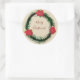 Joyeux autocollant de Noël avec Poinsettia, fleurs de Noël et dessin de couronne verte.