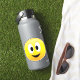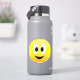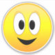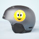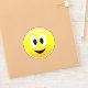 Un grand visage rond jaune joyeux. Face jaune rond avec de grands yeux ovales et une bouche gaie ouverte et souriante.