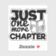 Un autocollant de citation de typographie drôle pour les vers de livres, qui dit : "Juste un chapitre de plus".