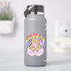Un autocollant de contour d'un lapin lapin lapin de style Kawaii très mignon, brun clair, aux papillons roses, devant un bel arc-en-ciel. Vous pouvez le personnaliser avec votre nom.