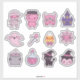 Assemblez votre propre Kawaii Pastel Monster Squad avec ce charmant pack autocollant! Cette charmante collection présente 12 modèles uniques, transformant les goules d'Halloween classiques en personnages irrésistibles, éffrayants-mignons, avec une esthétique rose et violet vibrante. Vous découvrirez d'adorables créatures comme une momie rose douce, un monstre de Frankenstein convivial, un monstre fantaisiste aux trois yeux, et un mignon fantôme rose. De plus, découvrez des éléments enchanteurs comme une maison mauve hantée, une baguette magique, un maïs sucré classique avec un arc, une toile d'araignée rose détaillée avec une araignée, un chaudron bouillonnant, une bouteille de potion remplie de coeur, un charmant chat sorcier noir et un vampire rose sucré. Ces décalcomanies en vinyle de haute qualité sont parfaites pour personnaliser les ordinateurs portables, les bouteilles d'eau, les planificateurs, les journaux, ou ajouter une touche unique à vos objets et décors en goth pastel.