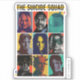 Colorful retro-style grid featuring The Suicide Squad members: Harley Quinn, Bloodsport, King Shark, Polka-Dot Man, Ratcatcher 2, Javelin, Peacemaker, The Thinker et le colonel Rick Flag.