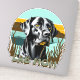 Cute Black Labrador Retriever Dog ai art. Lab Maman. arrière - plan de coucher de soleil vintage en marron, turquoise et turquoise.