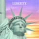 Lady Liberty et lever de soleil. Le texte peut être personnalisé.