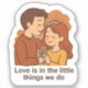 L'amour est dans les petites choses Sticker Célébrez les gestes sincères avec cet autocollant romantique montrant un garçon offrant une fleur et un tendre toucher du front. Il s’agit de l’amour exprimé par de petites actions significatives.
