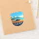 Sur la rive nord d'Oahu, entre la ville d'Haleiwa et le célèbre surf Pipeline, se trouve la plage de Laniakea. Connue pour ses visiteurs charismatiques dormant sur le rivage, Laniakea Beach est un site populaire pour admirer les tortues de mer verte hawaïennes. Capturé ici dans un autocollant de vinyle pour sceller les enveloppes et les emballages ou comme souvenir à garder pour vous-même.
