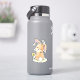 Joli lapin brun aquarelle regardant par-dessus son épaule pour que vous puissiez voir sa queue blanche et duveteuse. Deux abeilles à rayures jaunes et noires bourdonnent autour de sa tête. Sur le côté se trouve une simple fleur de dessin animé jaune avec des feuilles et une tige vertes. Autocollant fantaisiste et mignon inspiré de la nature.