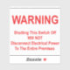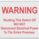 Un autocollant pour électriciens qui dit : "AVERTISSEMENT L'Arrêt De Cet Interrupteur Ne Déconnectera PAS L'Électricité À L'Ensemble Des Locaux".