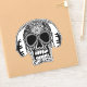 Cet autocollant cool est muni d'un crâne dessiné à la main et portant un casque et rempli de motifs de doodle. Parfait pour un ordinateur portable DJ ou un skateboard.
