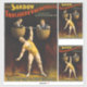 Allez, les gars ! Découvrez la merveille de l'époque moderne, le colosse lui-même taillé dans le granit, le Sandow ! — Plus fort qu'un orignal, plus résistant qu'une roue de wagon, cet Allemand ne se demande pas seulement du muscle, c'est une symphonie de force ! Le Trocadéro Vaudevilles n'est pas votre vieil opéra poussiéreux, monsieur ! Voici un palais de divertissement, une cage dorée pour les spectacles les plus prodigieux de ce côté du Mississippi ! Et ce soir, vous avez de la chance de voir Sandow dans toute sa gloire ! — Mais attendez-vous à vos casquettes, les gars, parce que Sandow n'est pas là pour l'haltérophilie ! Ce soir, il va réécrire les règles du potentiel humain ! Imaginez ceci : deux hommes adultes, assez gros pour faire un tourbillon de chasseur d'honneur, hissé haut dans des paniers en osier comme une cargaison précieuse. Maintenant, imaginez ces paniers suspendus d'une cloche, plus épais que le bras d'un marin ! Et cette cloche, les gars, qui est équilibrée sur les épaules d'un homme sculpté par les dieux - c'est Sandow ! — La foule souffle ! Les mères empochent leurs perles ! Même les cow-boys les plus durs ne peuvent s'empêcher d'émerveiller. Sandow se tient là, un Hercule humain tenant le poids de deux hommes avec un seul bras ! Ses muscles se gonflent comme des saucisses surchargées, des veines comme des rivières sur une carte, et la cloche ne se tortille même pas ! — Un battement de silence étourdi est lourd dans l'air. Puis, le barrage se brise ! La foule éclate dans un rugissement, une cacophonie d'acclamations, de sifflements et d'estompes qui pourrait secouer les fondations ! Les casquettes volent dans l'air, le pop-corn se disperse comme une tempête de grêle, et les planchers même tremblent sous les applaudissements tonnants. — Sandow, avec un sourire qui pourrait allumer un carnaval à minuit, abaisse lentement la cloche. La foule redevient folle, leur adulation résonne à travers le Trocadéro. Ce n'est pas juste un spectacle, les gars, c'est un miracle ! Un témoignage de la puissance du corps humain, un spectacle qui vous laissera bouche bée et commencera pour plus ! Ne ratez donc pas votre chance d'assister au légendaire Sandow ! Il sera là toute la semaine, les gens, étonnera le public et bendra les lois mêmes de la physique ! Mais dépêchez-vous, parce qu'un spectacle aussi magnifique ne va pas dernier pour toujours ! — Créé par The Strobridge Lith Co. Cincinnati & New York en 1894. Cette oeuvre est du domaine public aux États-Unis parce qu'elle a été publiée (ou enregistrée auprès du Copyright Office des États-Unis) avant le 1er janvier 1927.