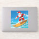 Plongez dans l'esprit des vacances avec cet autocollant délicieux avec le Père Noël surfant les vagues sur un planche de surf.