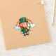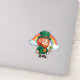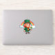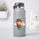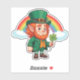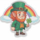 Cet adorable Leprechaun se tient devant un arc-en-ciel tenant un trèfle à quatre feuilles.