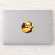 Cet autocollant de basket-ball personnalisé présente l'image réaliste d'un basketball qui a alternativement des panneaux de marron et d'or recolorés, sur lesquels vous pouvez personnaliser le nom de l'athlète et son numéro de maillot ainsi que le nom de l'école ou du club et le nom de la mascotte - par katz_d_zynes
