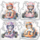 4 illustrations aquarelles de chats chevauchant un karting. 🐱