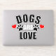 Dessin d'empreintes de pattes de chien et de cœurs rouges.