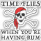 Le temps vole quand vous avez du rhum. Citation amusante design pirate est un grand cadeau pour un amoureux de pirates qui aime boire du rhum. Parfait pour Talk Like A Pirate Day ou porter en costume de pirate à Halloween ou à une fête ! Si vous aimez boire des cocktails de rhum et de rhum, c'est peut-être pour ça que le rhum a disparu ! Cet accessoire de pirate de dire drôle a un texte vintage et un crâne de pirate et des arêtes de croix graphique.