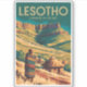 Lesotho retro vector travel design. Lesotho, known as the “Kingdom in the Sky,” is a high-altitude nation surrounded by dramatic mountains, waterfalls, and rugged highlands.