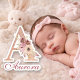 Un élégant décor de lettre A Floral Rose Gold Monogrammé avec nom et initiale. Personnalisez facilement avec le nom de votre enfant. Scrapbooking pour nouveau-né fille. Idéal pour les autocollants d'invitation de baby shower !