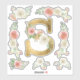Sticker LETTRE MONOGRAPHIQUE S Rose Rose Floral Feuille Aq