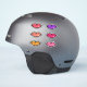 Six autocollants en vinyle kitsch aux lèvres brillantes : violet, rose chaud, rose, rose corail, pêche et jaune doré.