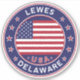 Lewes Delaware, autocollant de la ville de Lewes avec drapeau des États-Unis, forme arrondie