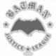 Découvrez ce logo de chauve-souris d'inspiration rétro pour Batman de la Ligue de la Justice. Son nom est écrit dans une ancienne police de style anglais avec "Justice League" dans une police san serif en gras, qui encerclent le symbole de chauve-souris.